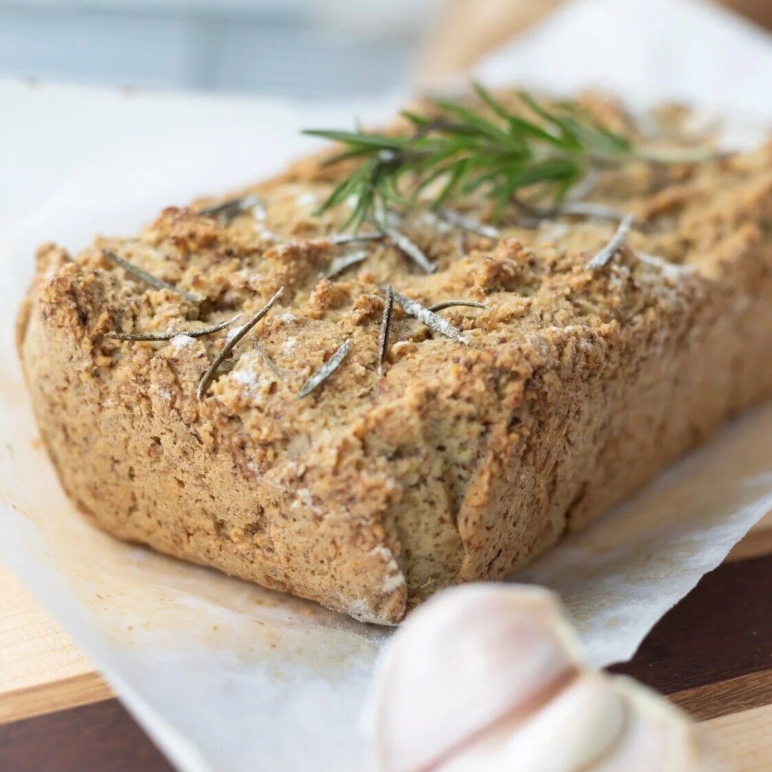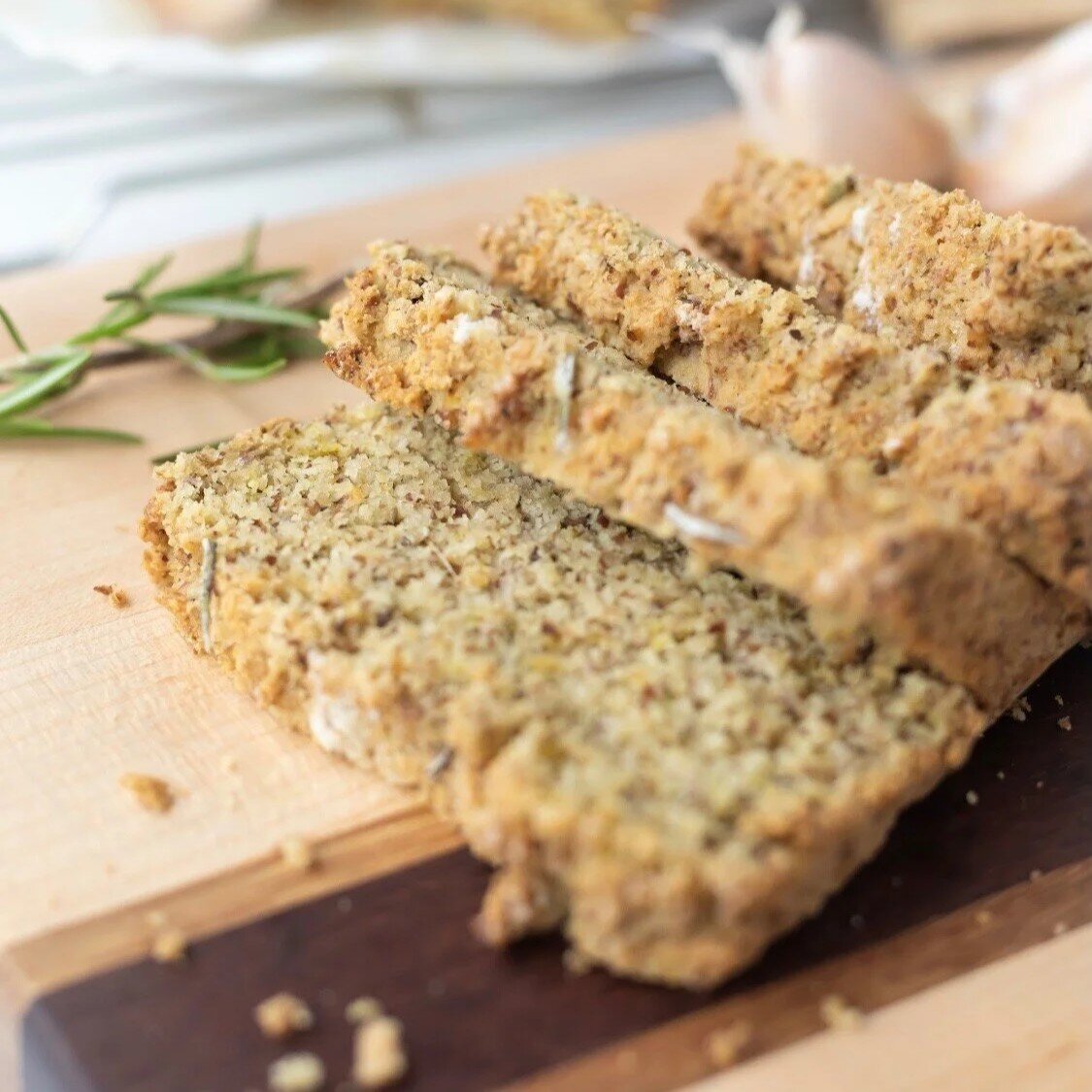 Ingredients: Almond Meal, Psyllium Husk, Baking Powder, Salt, Dried Rosemary, Garlic Powder, Dried Thyme