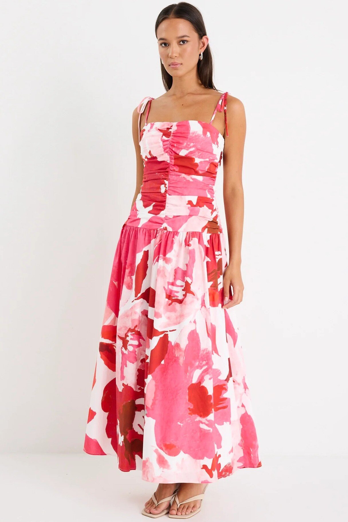 The Royalty Dress by Among the Brave is your go-to for making a vibrant entrance with zero effort. Featuring soft stretch cotton and a flattering ruched bodice, it flows into a beautifully pleated maxi skirt that moves with you. The bold floral print and sweet tie-up straps add the perfect feminine touch. It’s a dreamy piece for high-to-low dressing, style it up with statement heels or dress it down with casual flats.