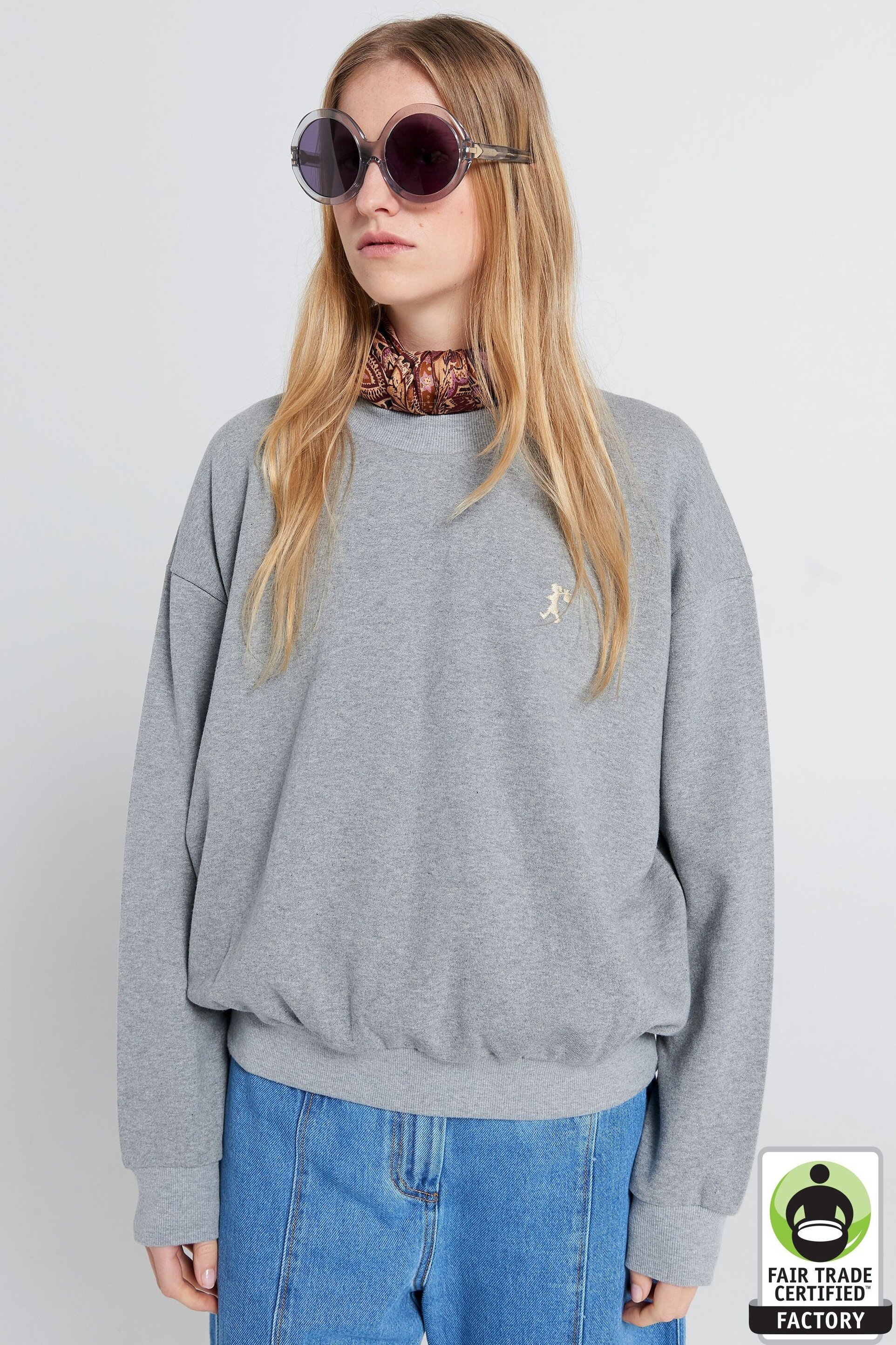 This sweatshirt is crafted from organic cotton, grown in India and made by our Fair Trade Certified™ partners. Any waste fabric from production is collected to be repurposed into new cloth. Offcuts from the cutting process are recycled back to yarn and then rewoven or reknitted into new fabric.