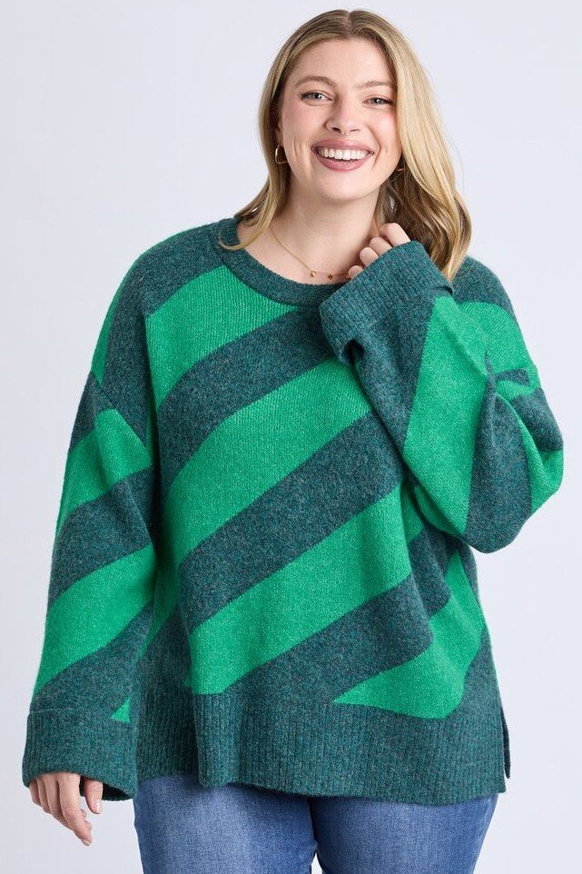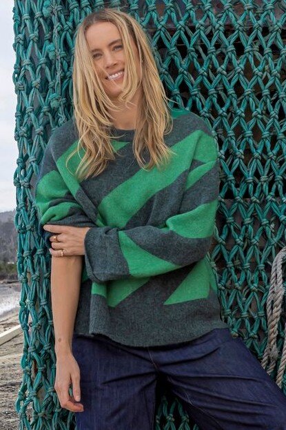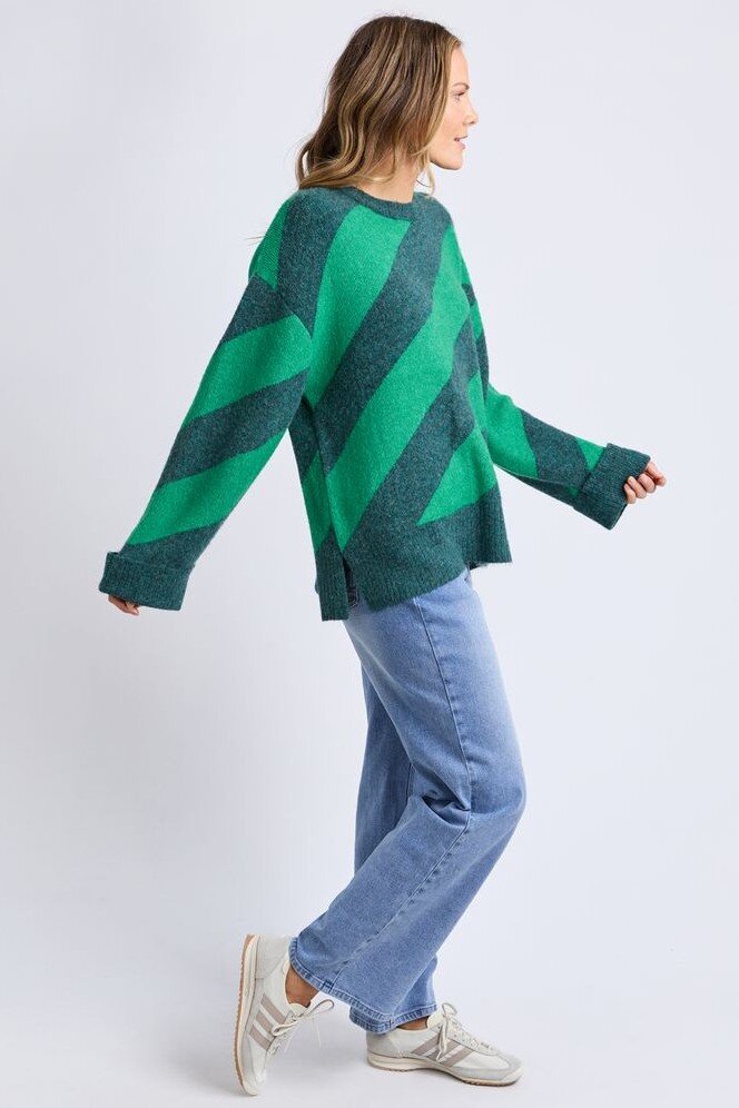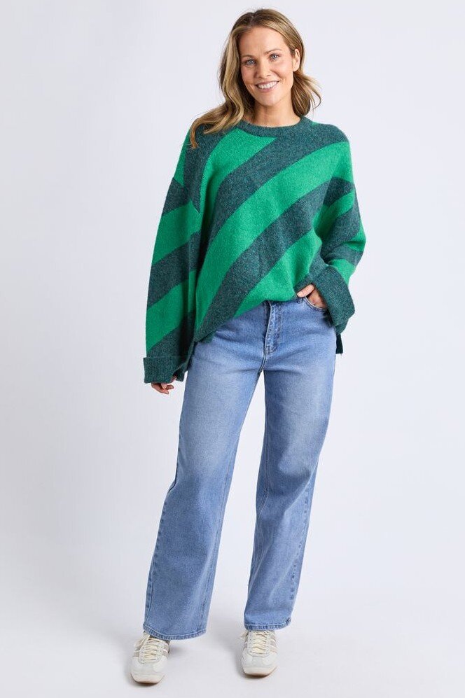 The Elm Sage Diagonal Stripe Knit offers cosy comfort with a modern stripe design. Featuring dropped shoulders, soft yarns and a relaxed fit, it’s perfect for cooler days. Style with straight-leg denim or relaxed pants for easy everyday wear.