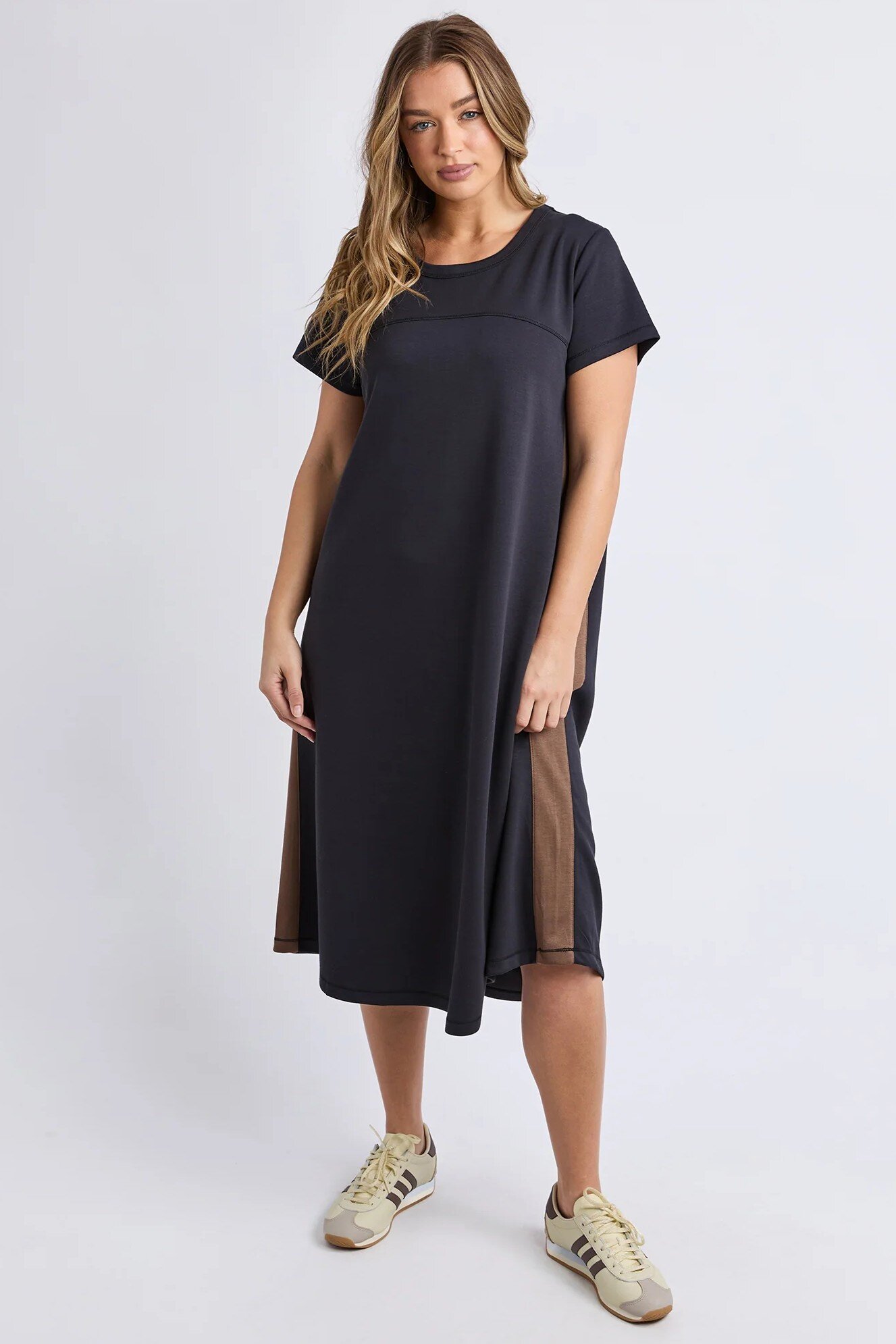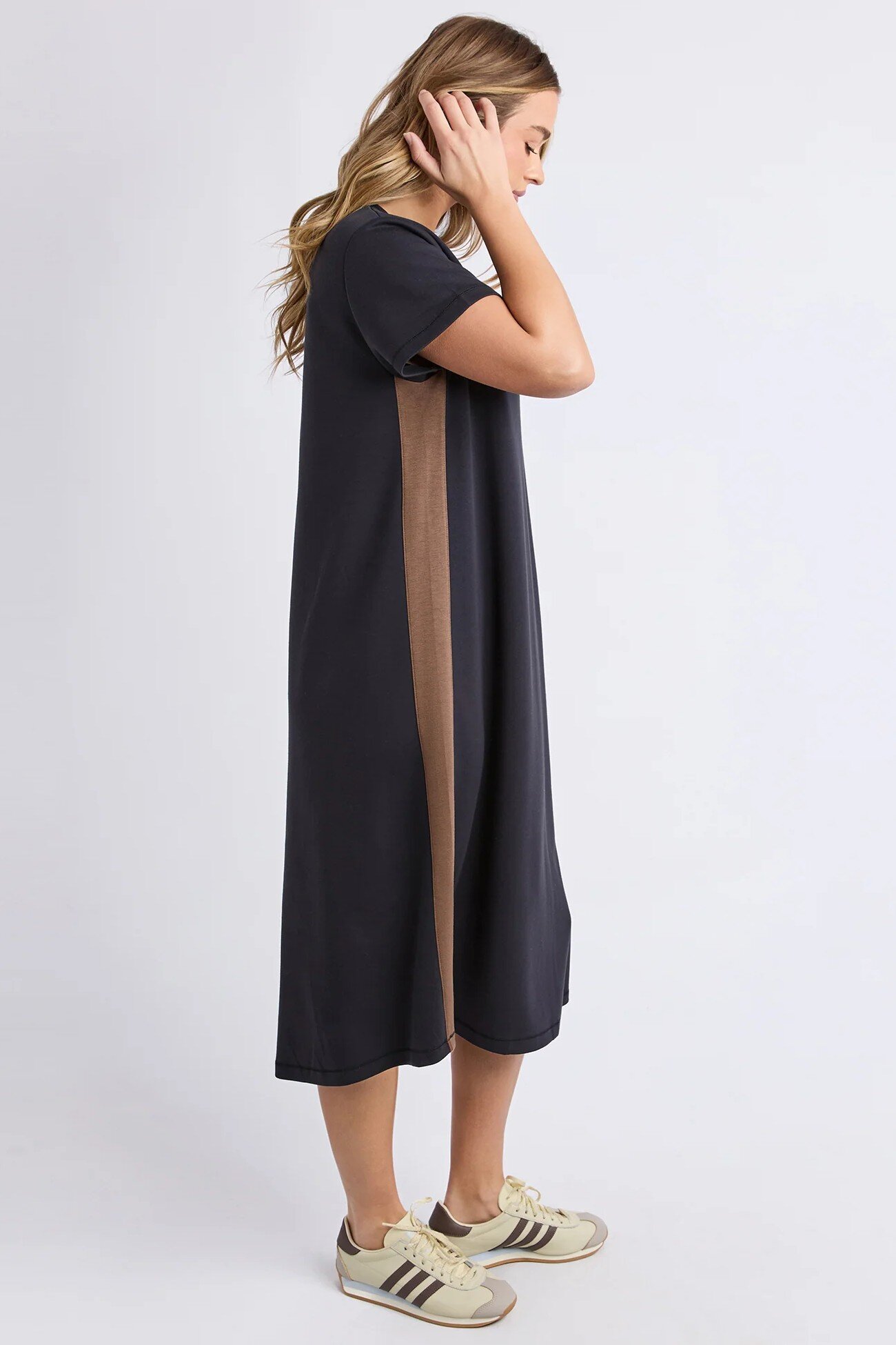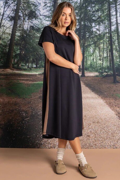 With side contrast panels, a relaxed fit, and a midi length that moves with you, this dress is your new partner in crime for everything from coffee runs to weekend hangs.