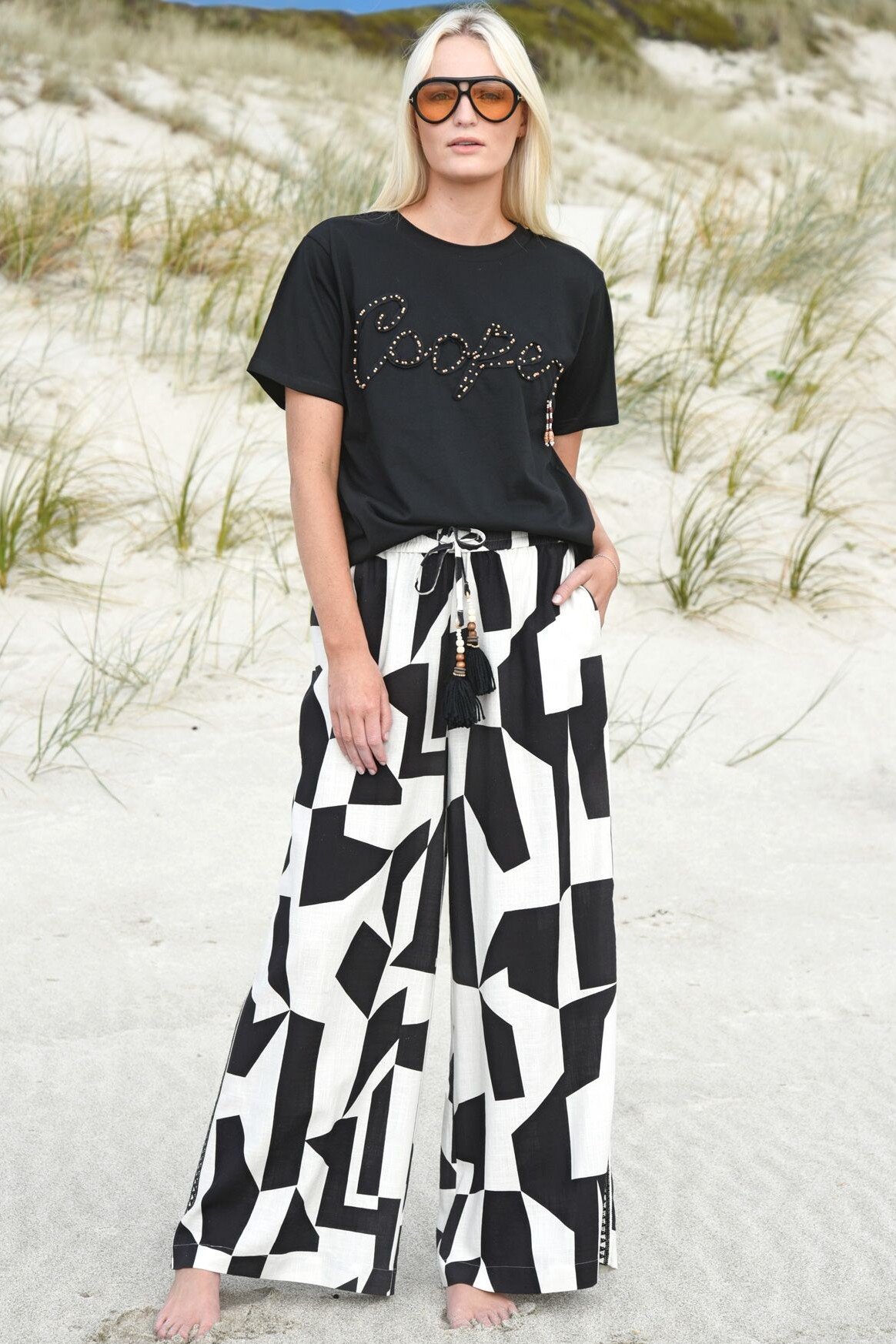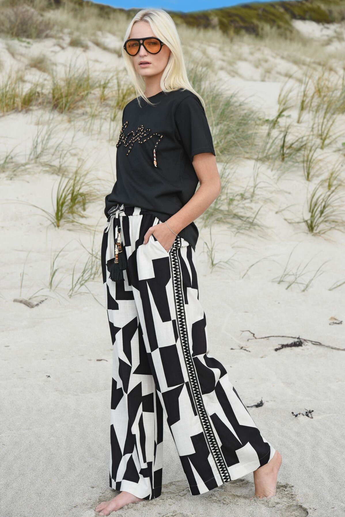 A wardrobe staple perfect for the summer rotation, look stylish in a pinch with the ‘Seville Strolls’ pant in ‘Off the Grid’ linen. Featuring an elasticated waist with drawstring finished with wood tassel detail, these pants also feature side pockets, and an Aztec trim on the sides. Pair back with a simple tee for an effortless day to day look.