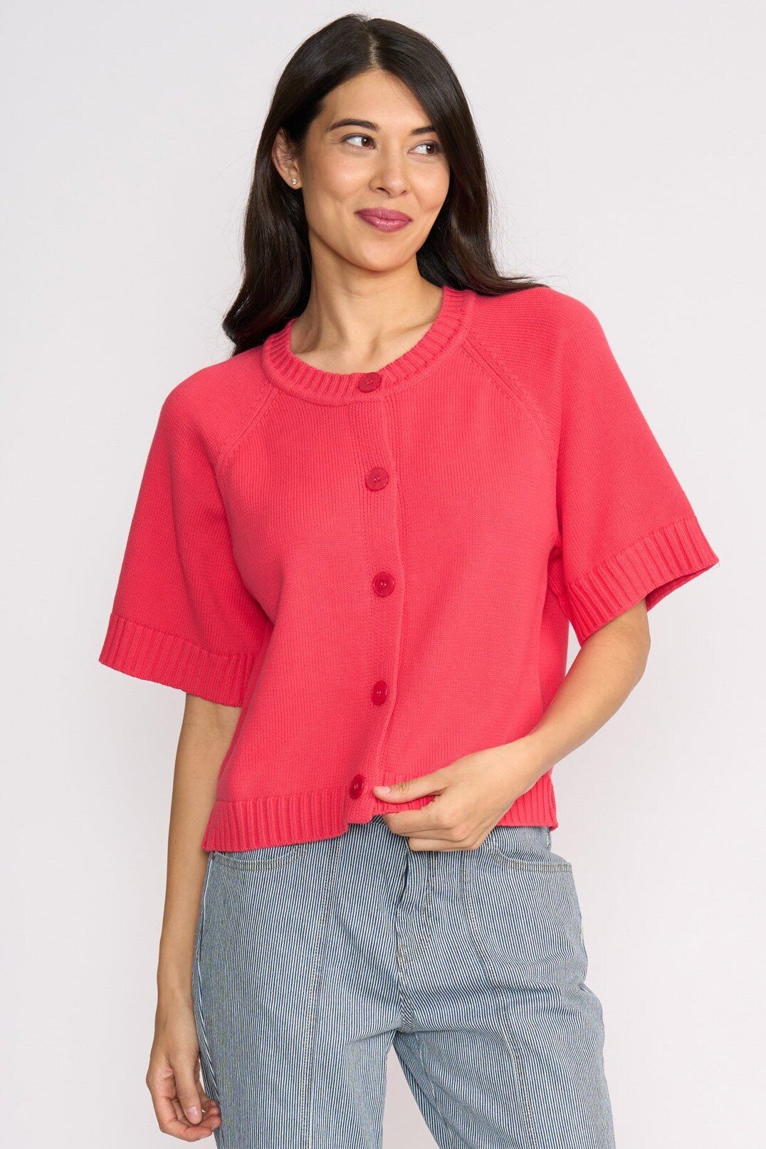 Our must have relaxed fit cardigan, designed for effortless style and comfort. Featuring a classic button closure and elbow-length sleeves, this cardigan is perfect for layering over your favourite outfits.