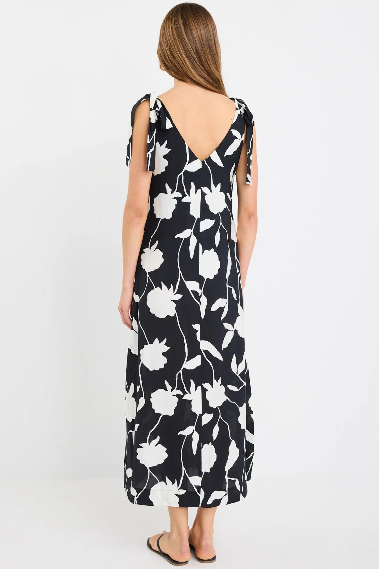 The Spontaneous Black and White Floral Dress is the ultimate throw-on-and-go piece that still makes a statement. With its sleeveless cut, tie details at the shoulders, and bold floral print, it brings easy elegance to any occasion. Fully lined for comfort, this flowing silhouette works perfectly for high-low dressing, whether styled with sandals or dressed up with heels.