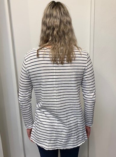 Strumpet Tee has a rounded neckline and is long sleeved. This tee has slits down the sides with a curved hemline at the front, falling just at the hips and has a straight hemline at the back, falling just below the hip.