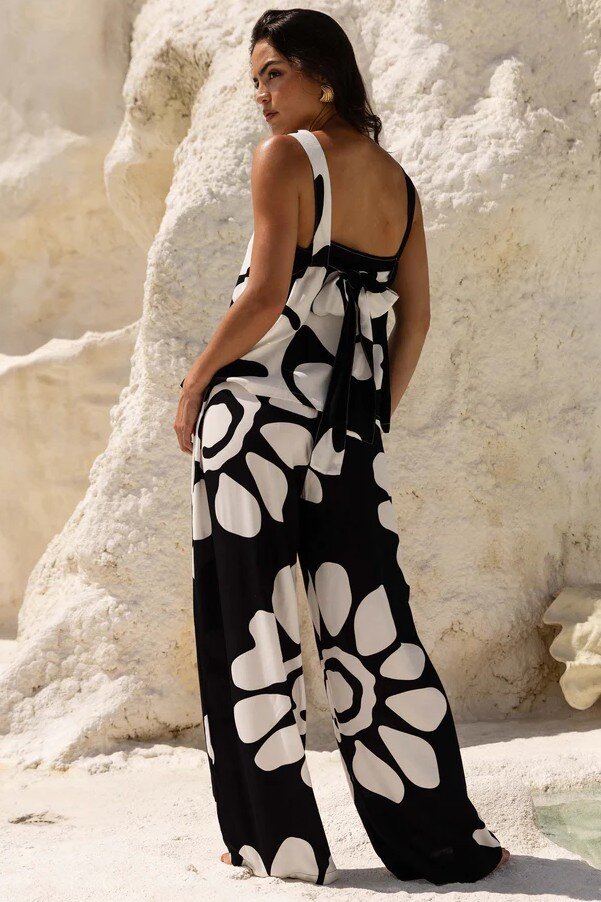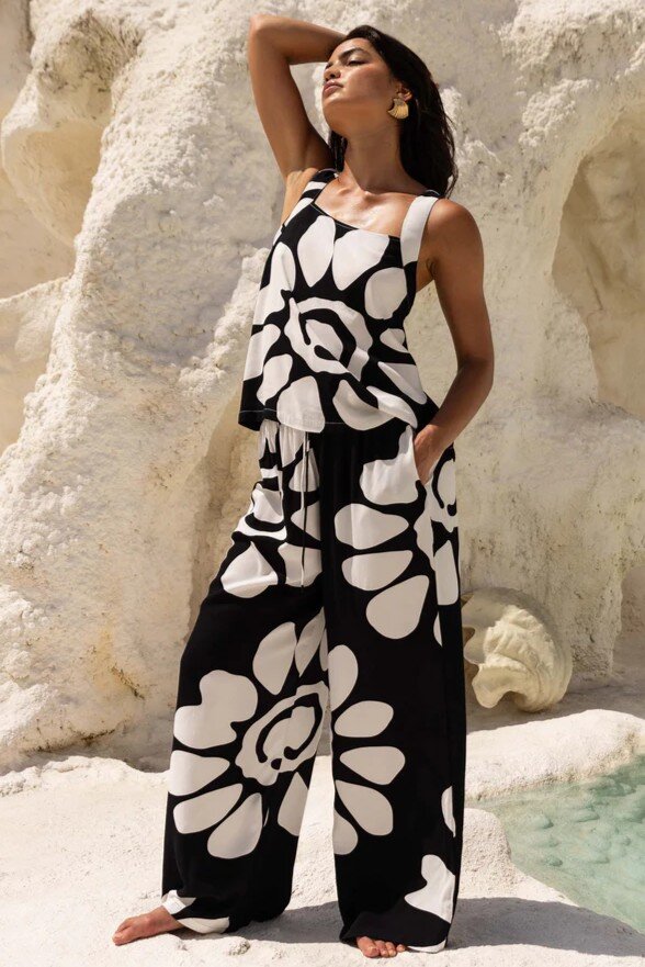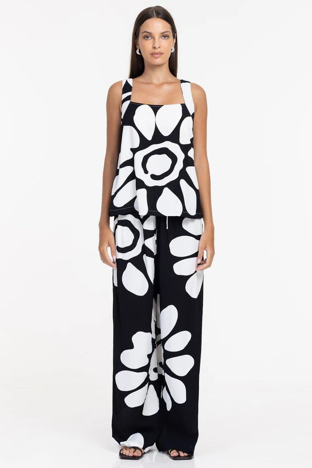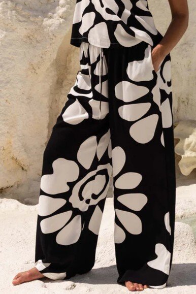 Unapologetically striking, the Supreme Pant redefines print in motion. Cut from fluid viscose, the wide-leg silhouette becomes a canvas for our oversized monochrome motif - graphic, sculptural, and impossible to ignore. The elasticated waist offers effortless wearability, while the dramatic proportions and liquid drape deliver runway-worthy presence. Designed to anchor a look with instant impact, this piece transforms even the simplest pairing into a considered statement.