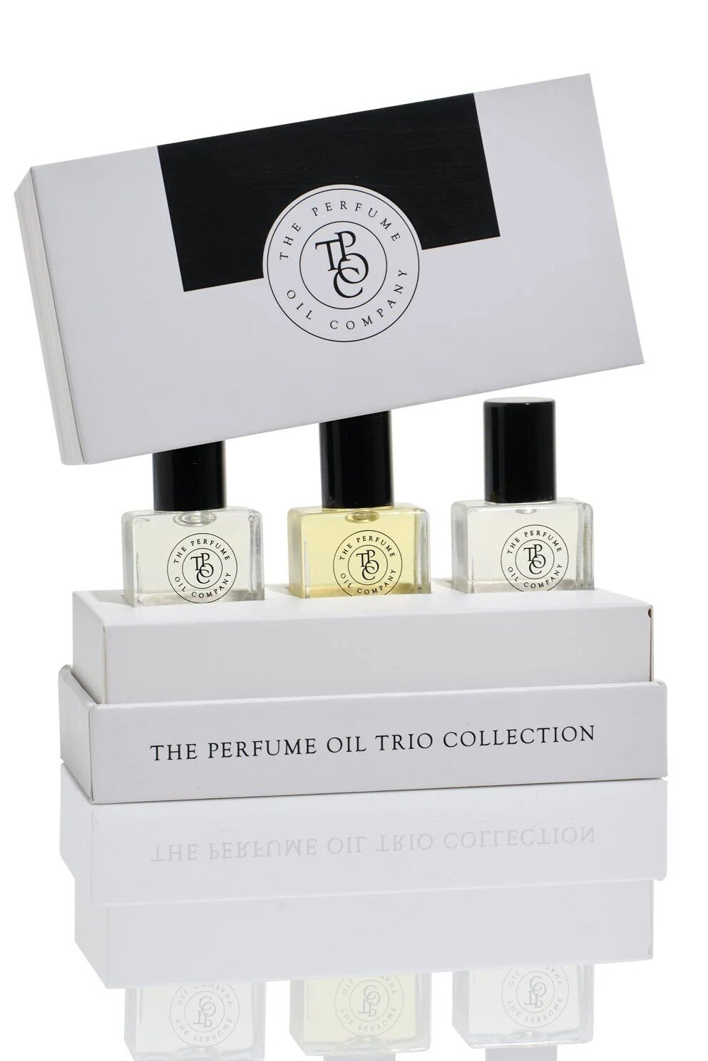 A three piece gift box containing a trio of 5mL top-selling fragrances within a category.