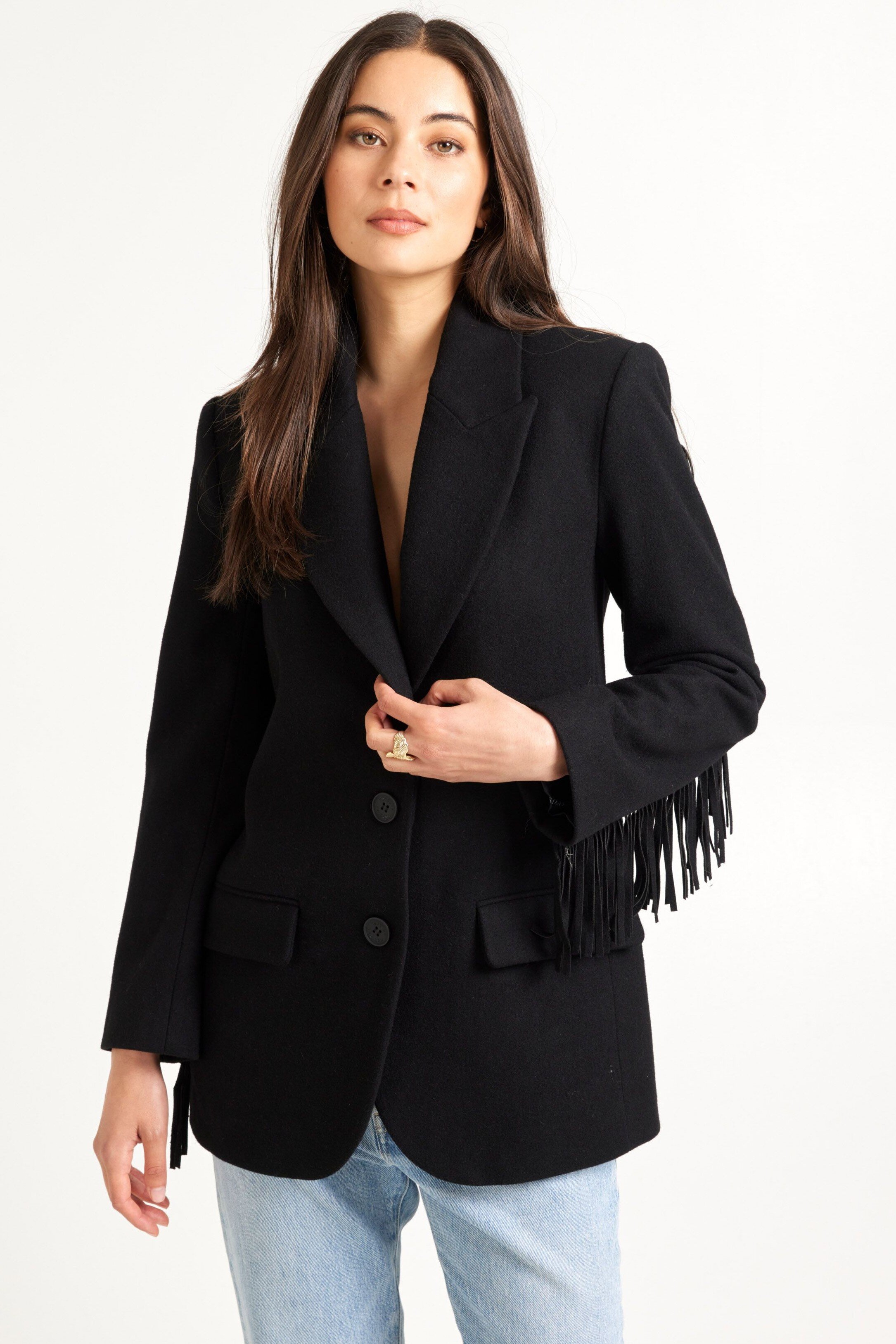 Tassels and fringing are having a major moment, and you NEED to get on board! We’ve made it easy for you by adding subtle fringing to a classic blazer... black, wool blend and tassels - tick. Keep up with the fashion set and simply wear with your favourite jeans – this premium fabric is warm enough for all-year round
