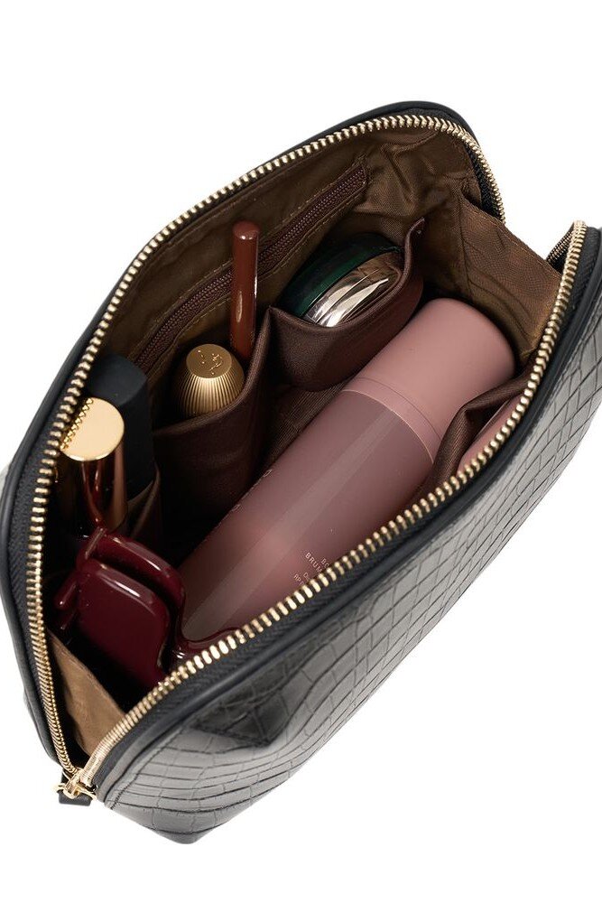 Your everything essential. Tate is that mid-sized miracle worker with a three-quarter zip that opens wide for instant access to whatever you need, whenever you need it. Tech chargers, skincare heroes, makeup must-haves, daily tid-bits - she keeps the beautiful chaos of your desk, vanity, or giant tote bag elegantly contained. Crafted in luxurious leather, Tate proves that practical can be seriously chic. The pouch that finally makes "I swear it's in here somewhere" a thing of the past.