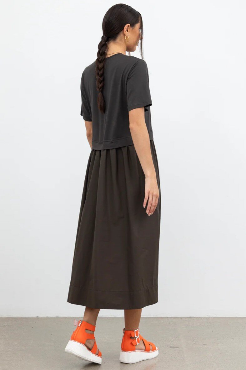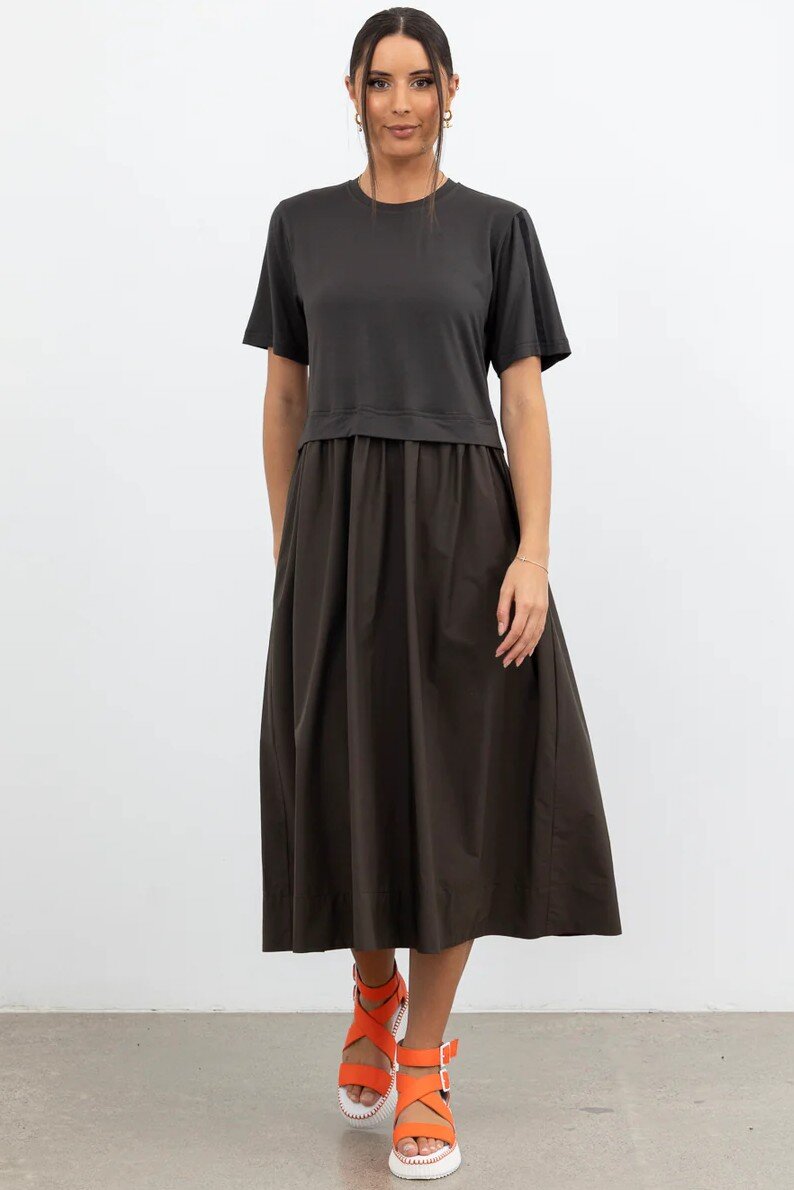 The That Way Dress is your go-to effortless midi for days when you want to look put-together with minimal fuss. Its cotton blend fabric holds its shape while offering a touch of stretch for all-day comfort, and the bold contrast trim along the neckline and sleeves adds a graphic finish that instantly elevates any look. The slim-fitting bodice softly flares into a gentle A-line skirt hitting just below the knee and features discreet side pockets for practicality without sacrificing style.