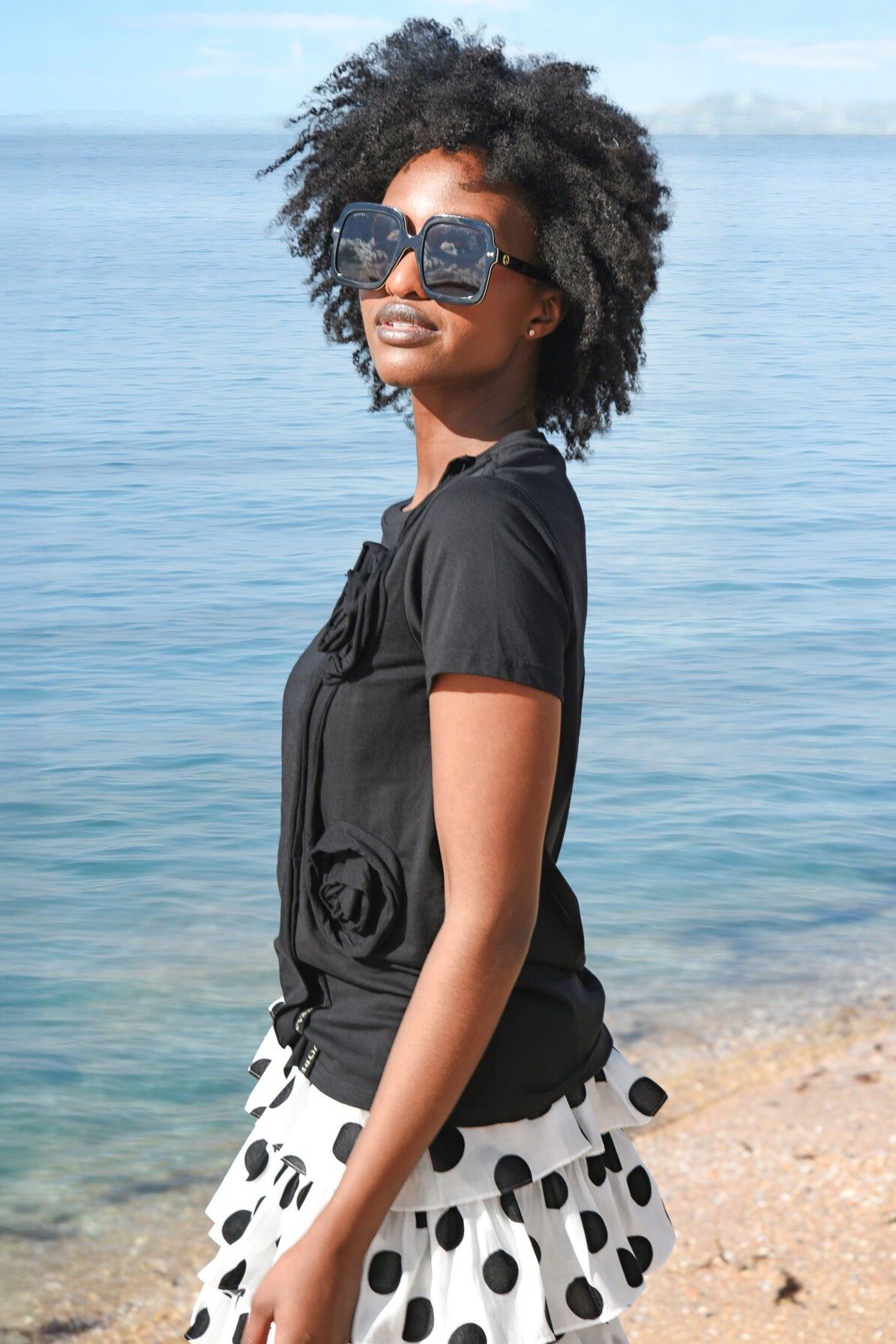 Boasting a floral rosette as an expressive interpretation of a staple, the ‘Flower of Love’ t-shirt, is an elevated piece that is a wardrobe must-have. Crafted in our favourite ‘Cotton’s up’ fabrication, the floral rosette add a touch of femininity, with contrasting Trelise Cooper tape peaking through for edge. Pair with your favourite spot print fabrication to tie looks together with effortless ease.