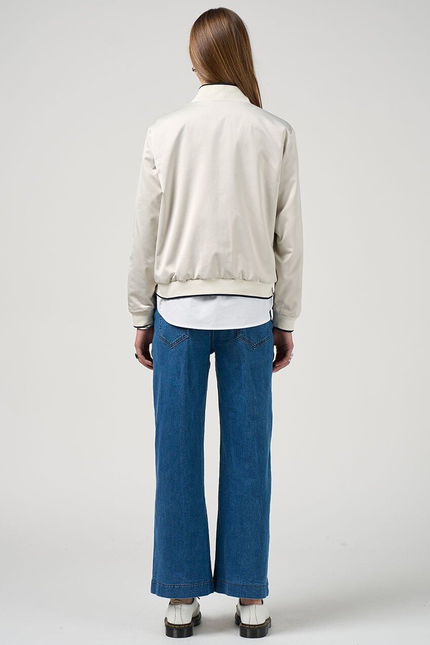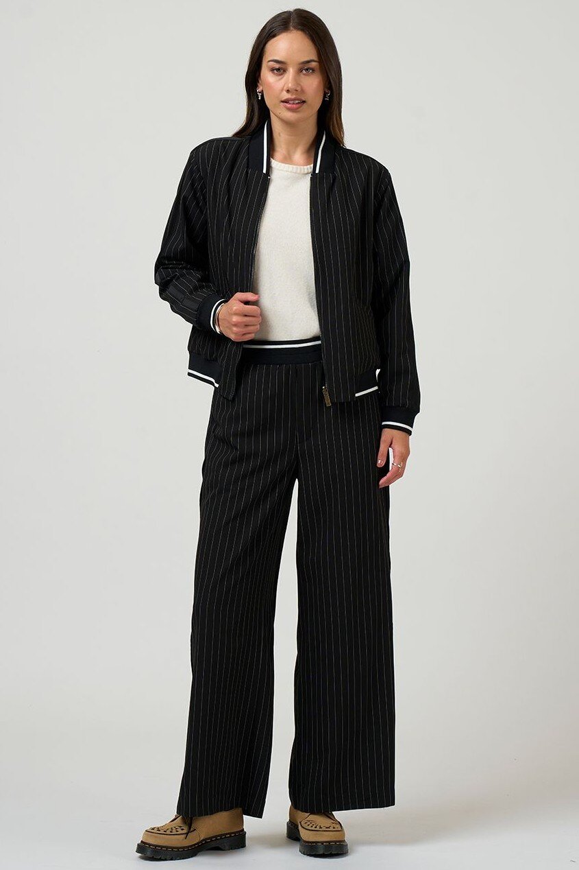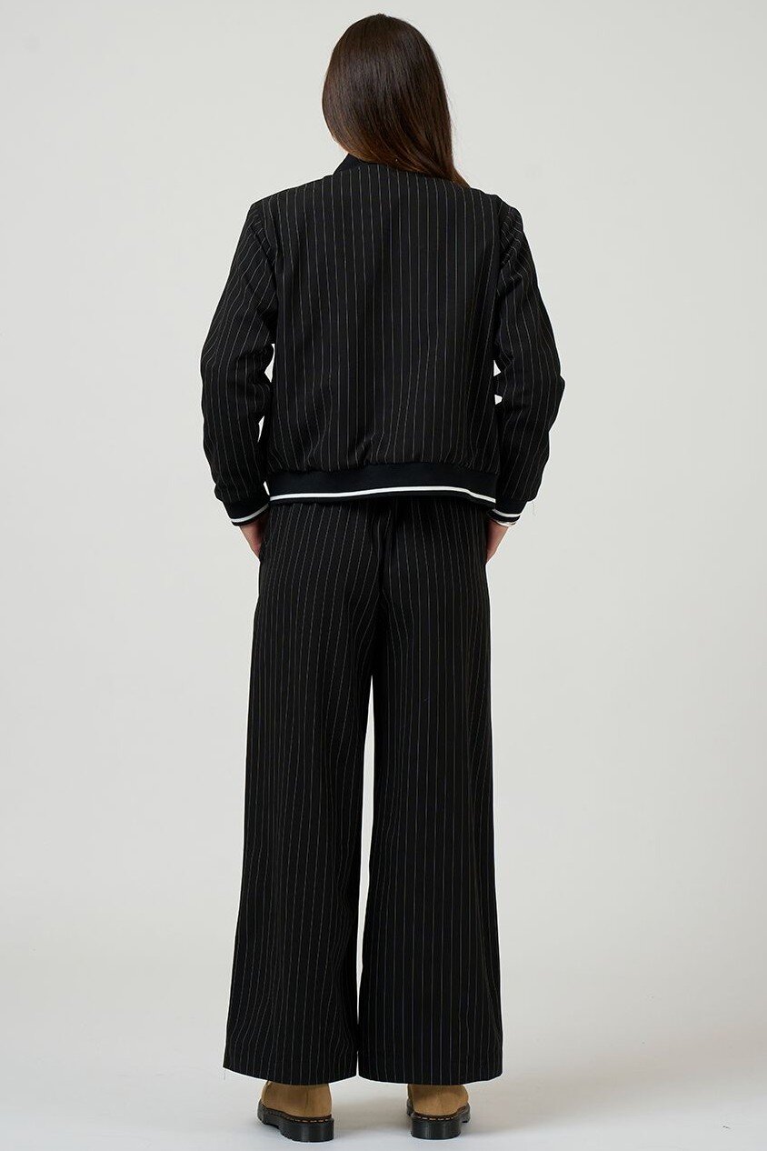 Fully reversible bomber style jacket with stripe rib detail, and contrast piping with functional pockets on both sides.