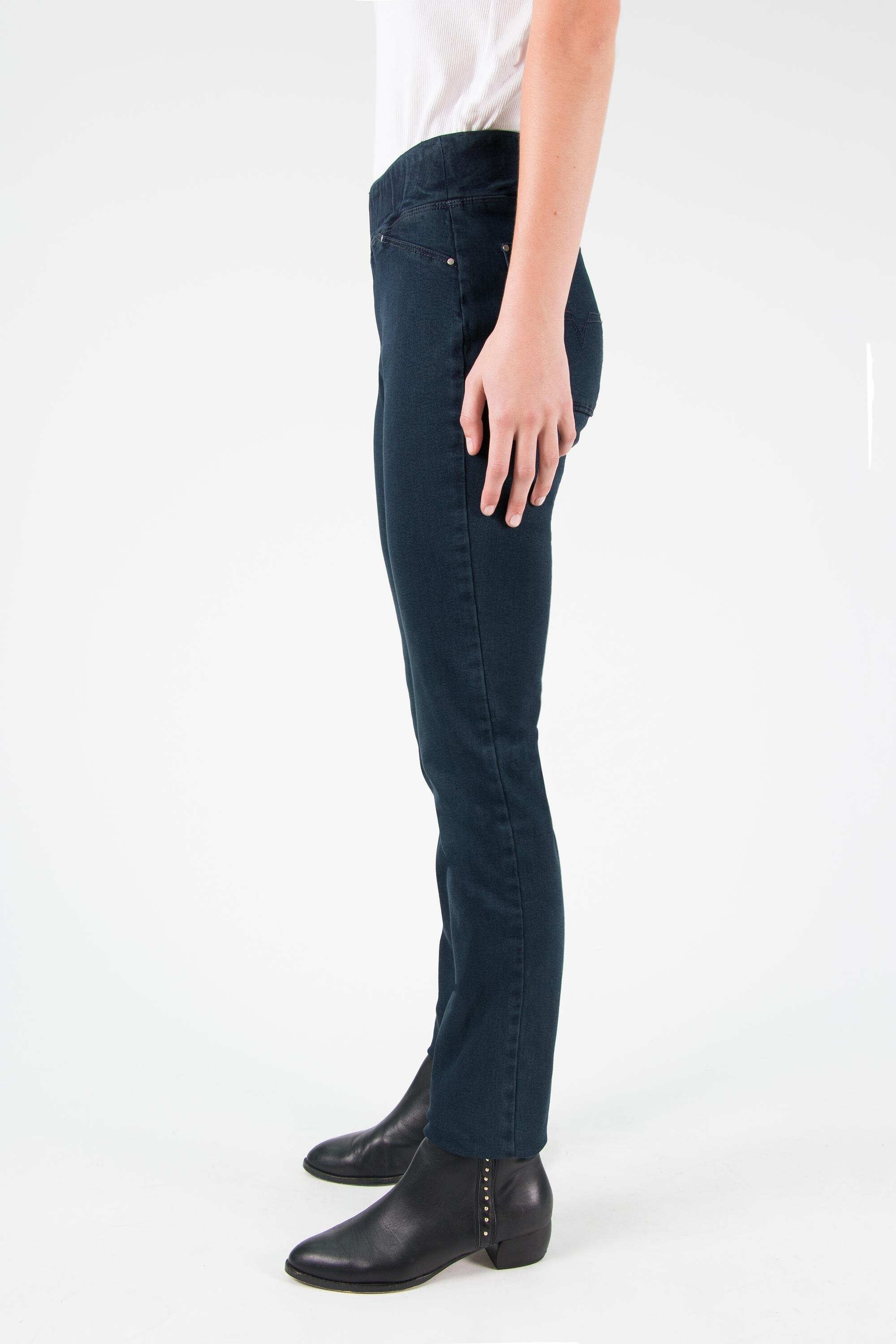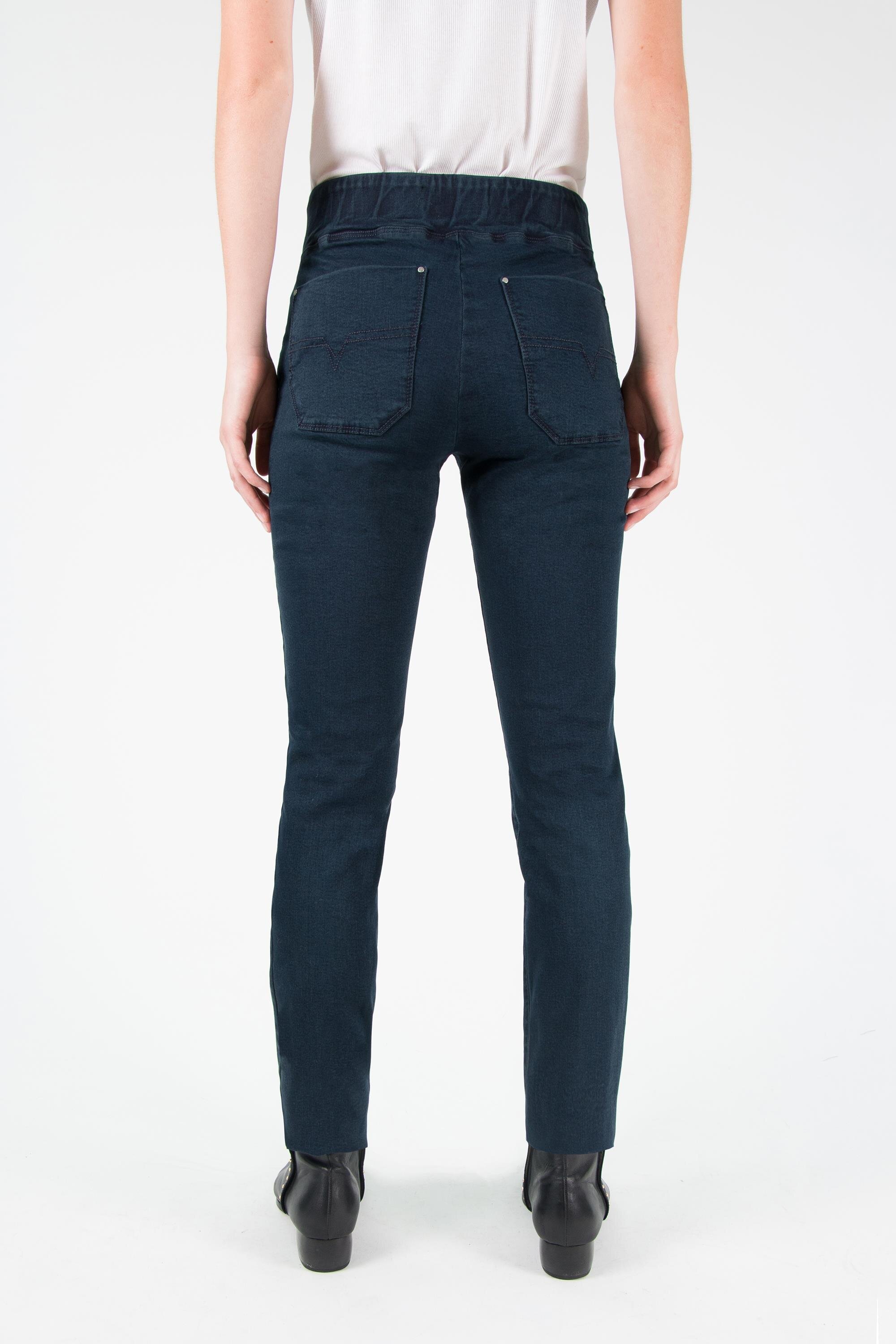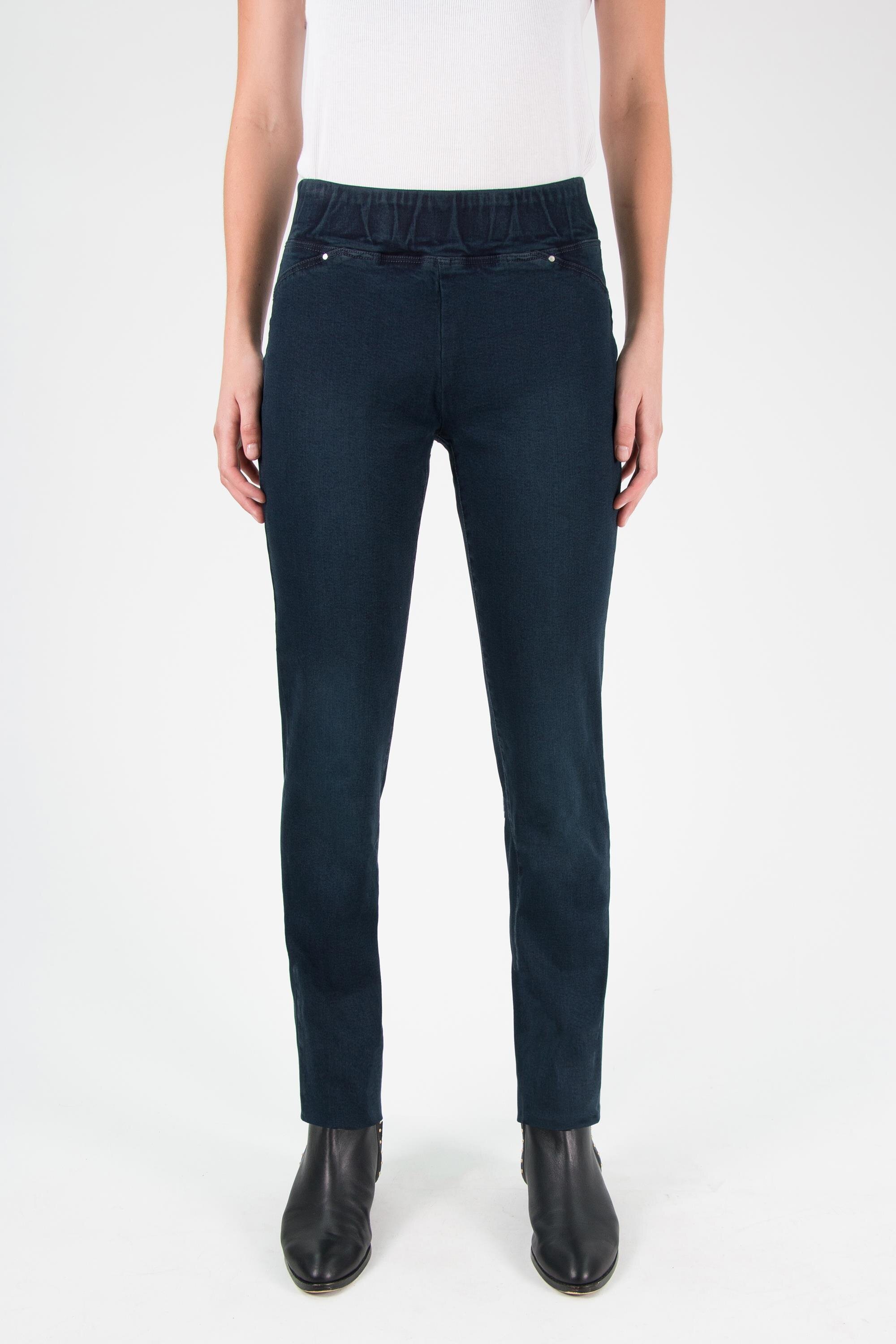 Soft Turkish denim pull on jean.  Elasticated waistband that sits flat on the waist.  Super stretch denim for all day comfort.  Full length slim legline.