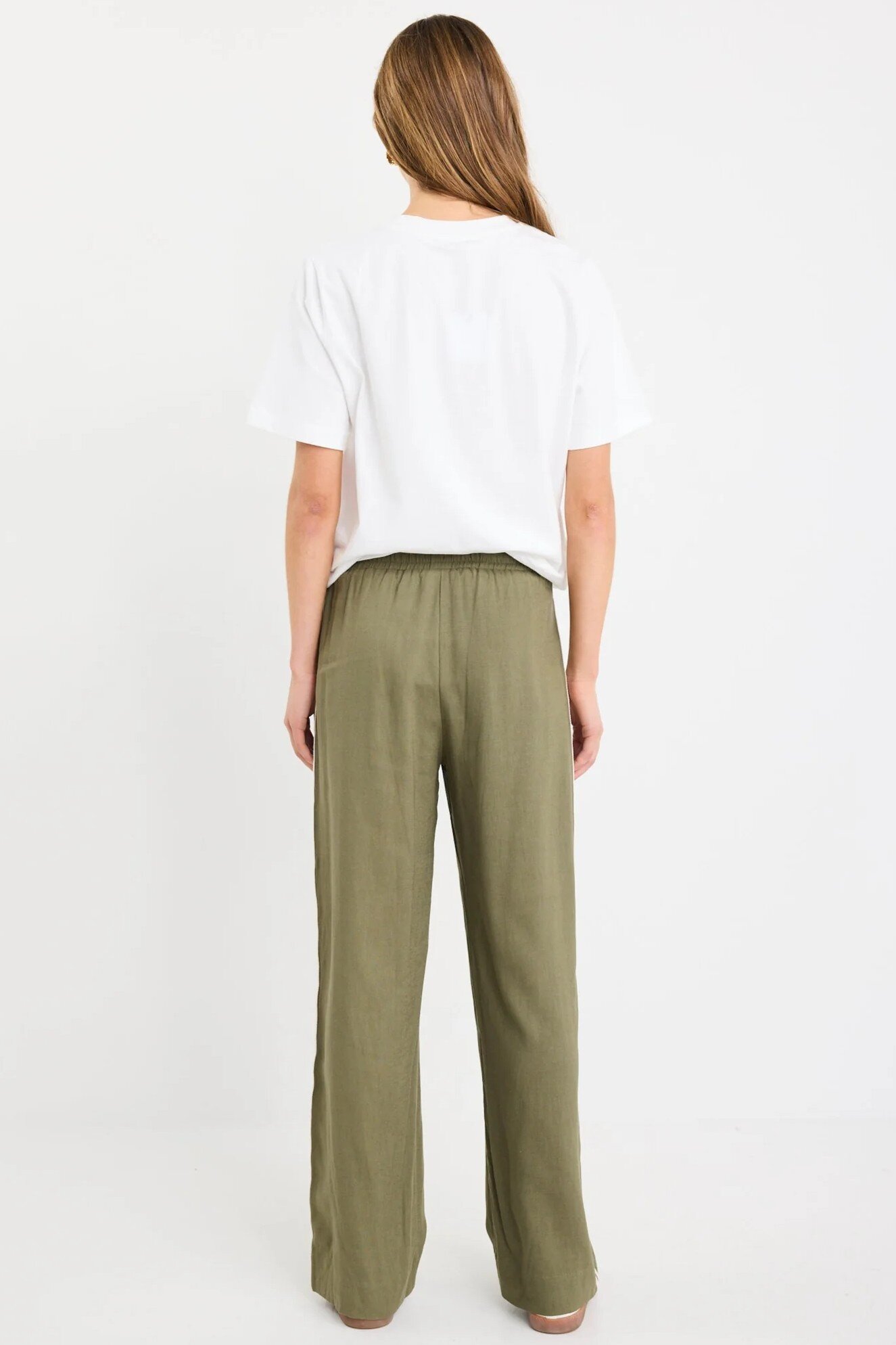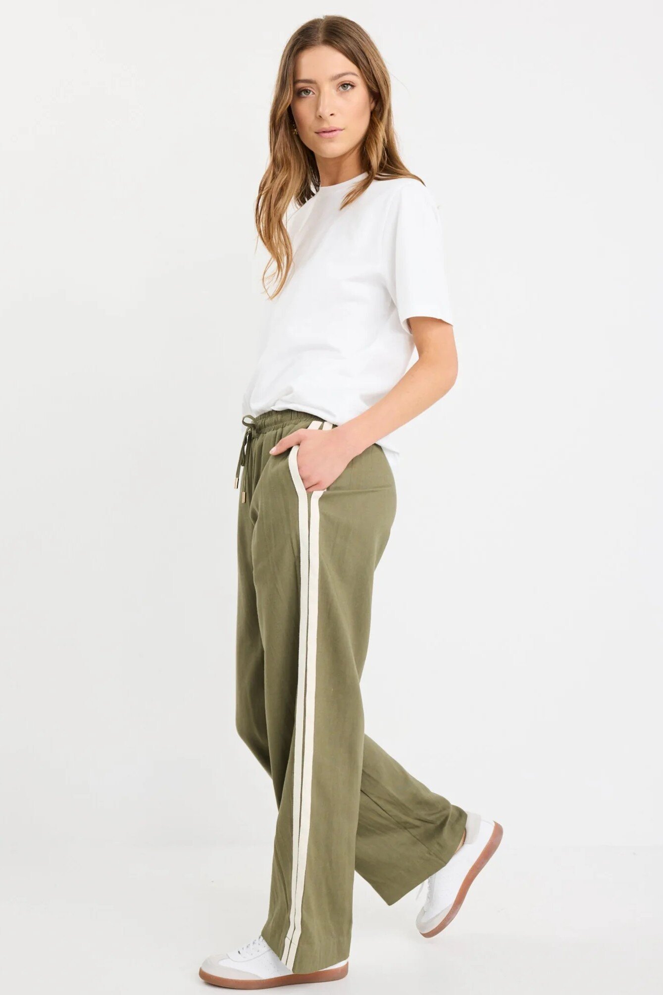 Vibe Khaki Linen Blend Jacquard Stripe Wide Leg Pants