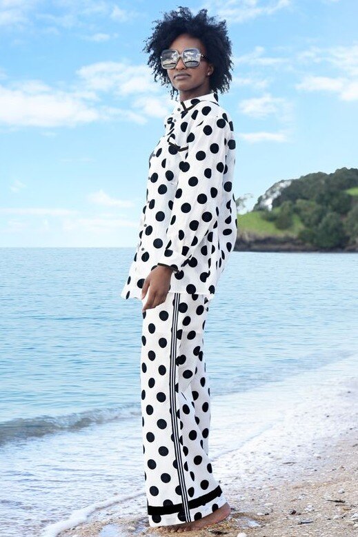 Crafted in the rich flocked spot details of our ‘Flocked Together’ fabrication, the ‘Walk and Talk’ trouser offers a contemporary twist on a timeless classic you know and love. Featuring an elasticated waistband, side pockets and complementary grosgrain trimming, these half-lined pants will see you through those warm summer days whether worn as a separate with your favourite shirts, or with the matching ‘Drift Away’ shirt for the pajama chic look we love.