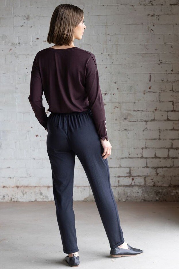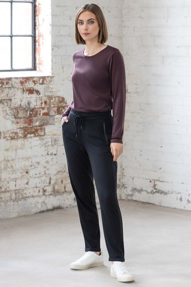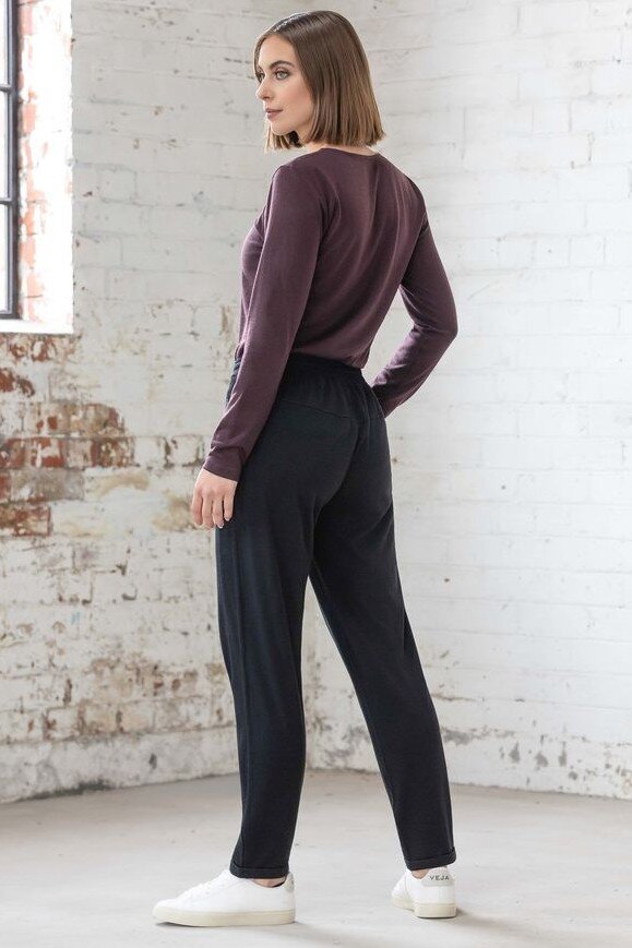 Casual merino pant, combining soft comfort with a clean, streamlined silhouette. With an easy pull-on fit and slim leg shape, this style delivers relaxed wearability with a polished feel.