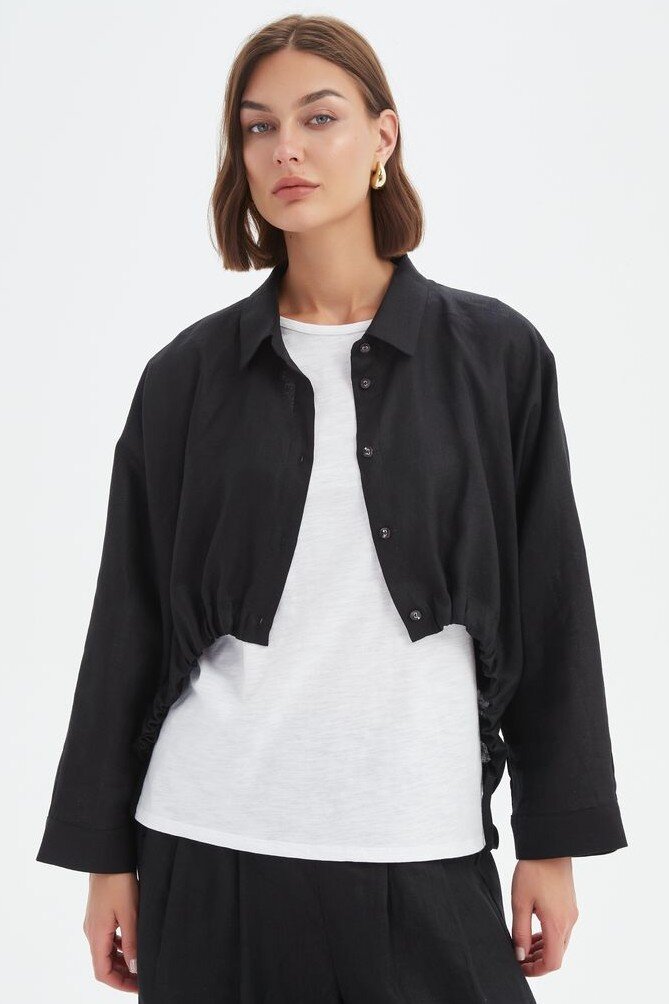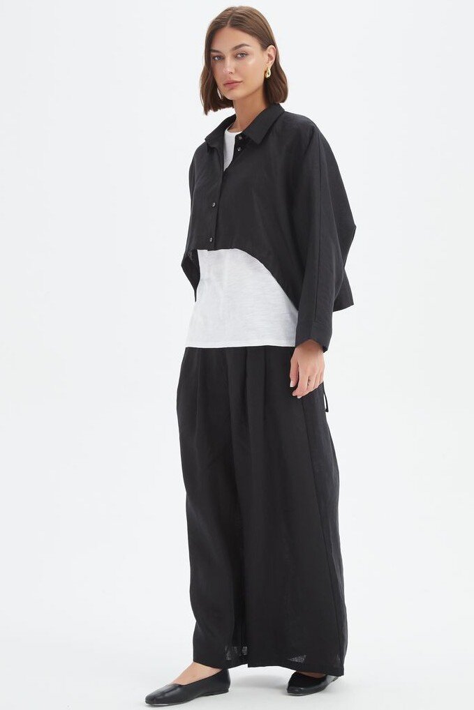 Effortless layering meets relaxed sophistication in the Wide Crop Overshirt. Crafted from 100% French Linen, this cropped overshirt features long sleeves, a classic button-up front, and a tie hem that adds subtle shape to its relaxed silhouette. Wear it as a stand-along top, over dresses, with tailored pants, or layered atop casual staples for an elevated, contemporary look
