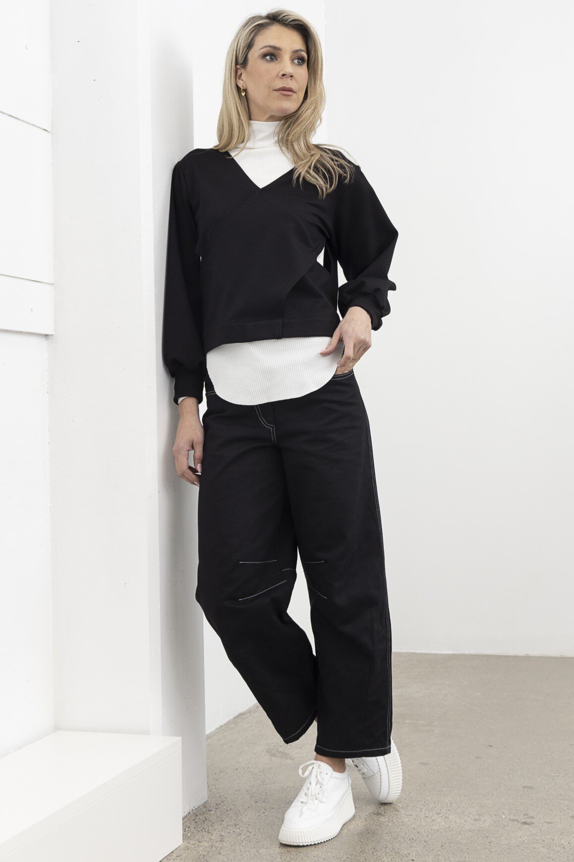 The X Top is same cut as the X Vest, but it features long sleeves as well as the front cross design, representing the X in XLAB. It is a stylish and versatile piece designed to be worn as a top layer or over top. The vest has a plain back and wrap-around front detailing and is proudly crafted and made in New Zealand.