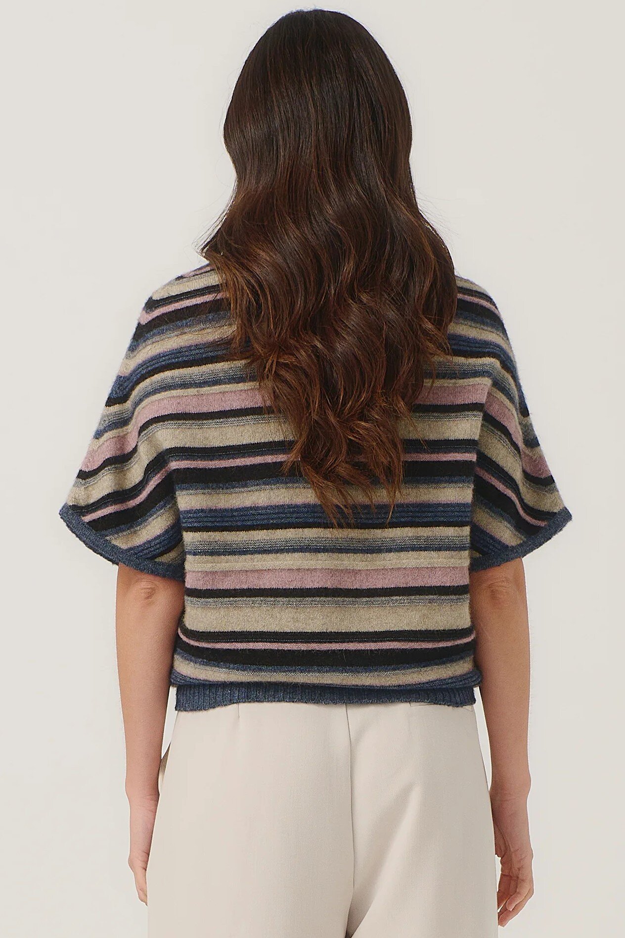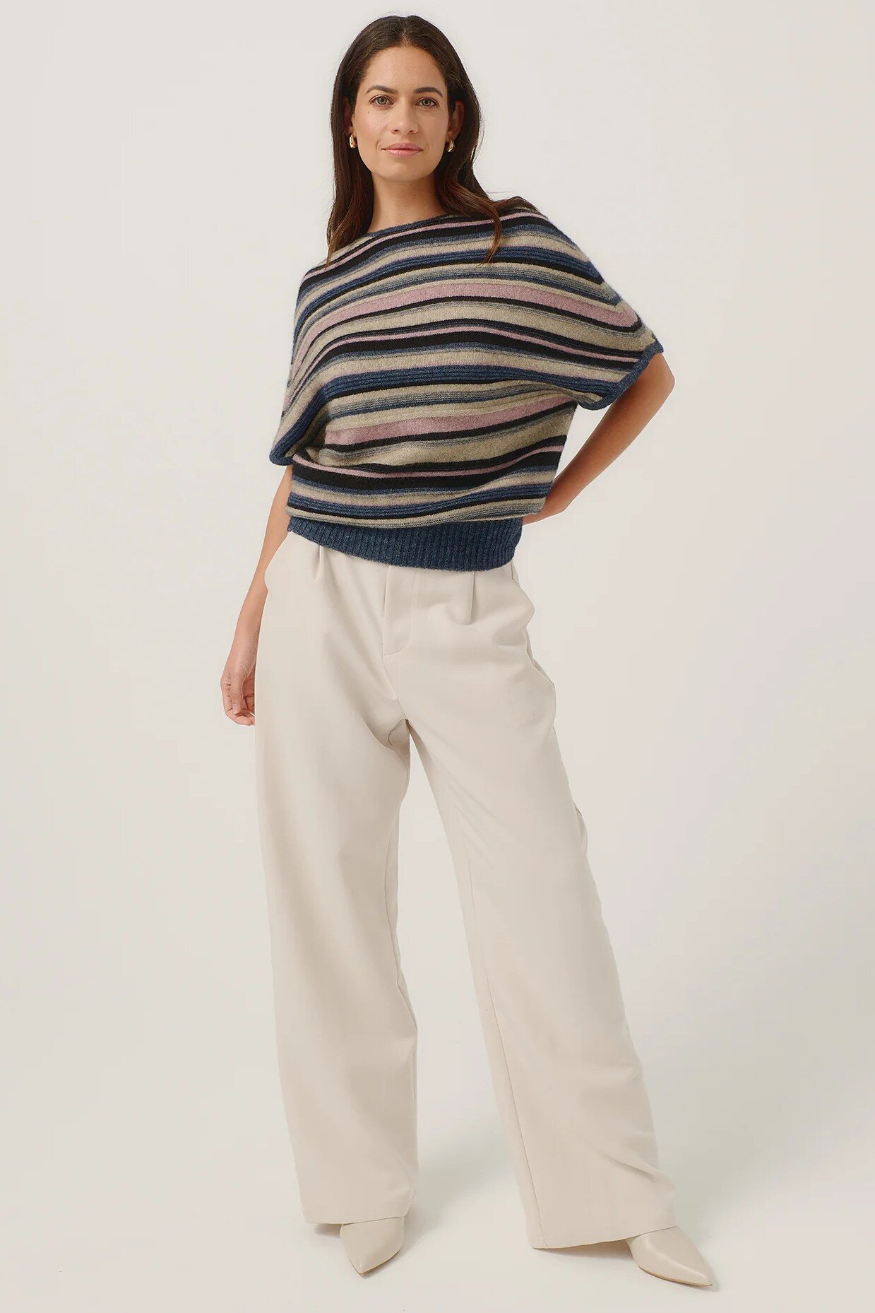 Ziggy brings a sense of playful sophistication to your wardrobe. With its vibrant striped patterning and elegant grown-on sleeve, this piece makes a statement while offering effortless comfort. Knitted in a luxurious blend of merino, possum fibre and silk, it offers warmth without weighing you down. Wear it layered over a fine knit, or on its own for a modern silhouette that works from day right through to night.